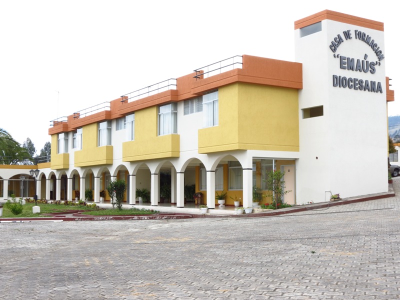 El promotor de la creación de esta obra fue Monseñor Germán Pavón, su ejecución empezó en el año de 1991 con ayuda de Adveniat, terminando de construirse en 1994, y empieza a ofrecer sus servicios en 1.995, con las ideas claves al servicio de pastoral, encuentros de formación, como catequesis, grupos de apostolado y servicios a fines, ofreciendo hospedaje y alimentación. Desde la apertura de la Casa de Formación "Emaús", su administración ha estado a cargo de la Hna. Mariana Cevallos. La idea surgió como una necesidad de tener una Casa de Retiros propia de la Curia. Su ubicación se debe a la decisión de todo el Clero de ese entonces, y por ser un lugar central de la provincia del Carchi, además de lo agradable del clima.